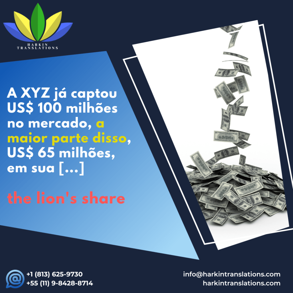 🦁 2. The lion’s share – significa a maior parte de algo.